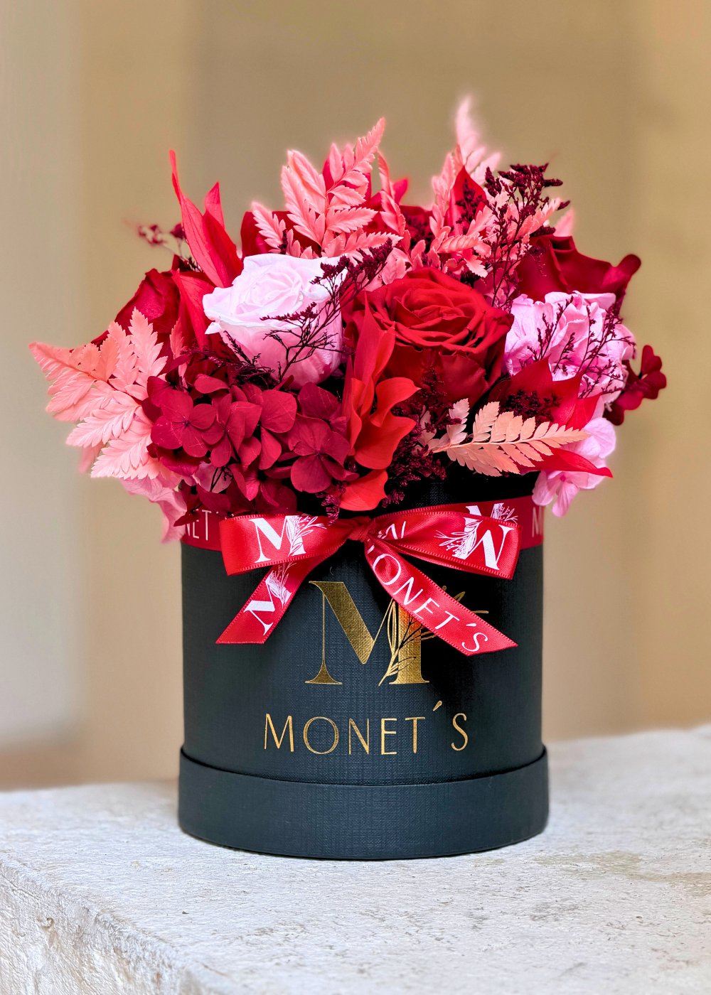 A diferencia de cualquier flor fresca que tienen una corta esperanza de vida (máximo 5 días), las flores eternas de Monet’s tienen una duración de hasta 1 año. Olvídate de las flores marchitas y disfruta la belleza de las rosas Monet’s sin importar la estación